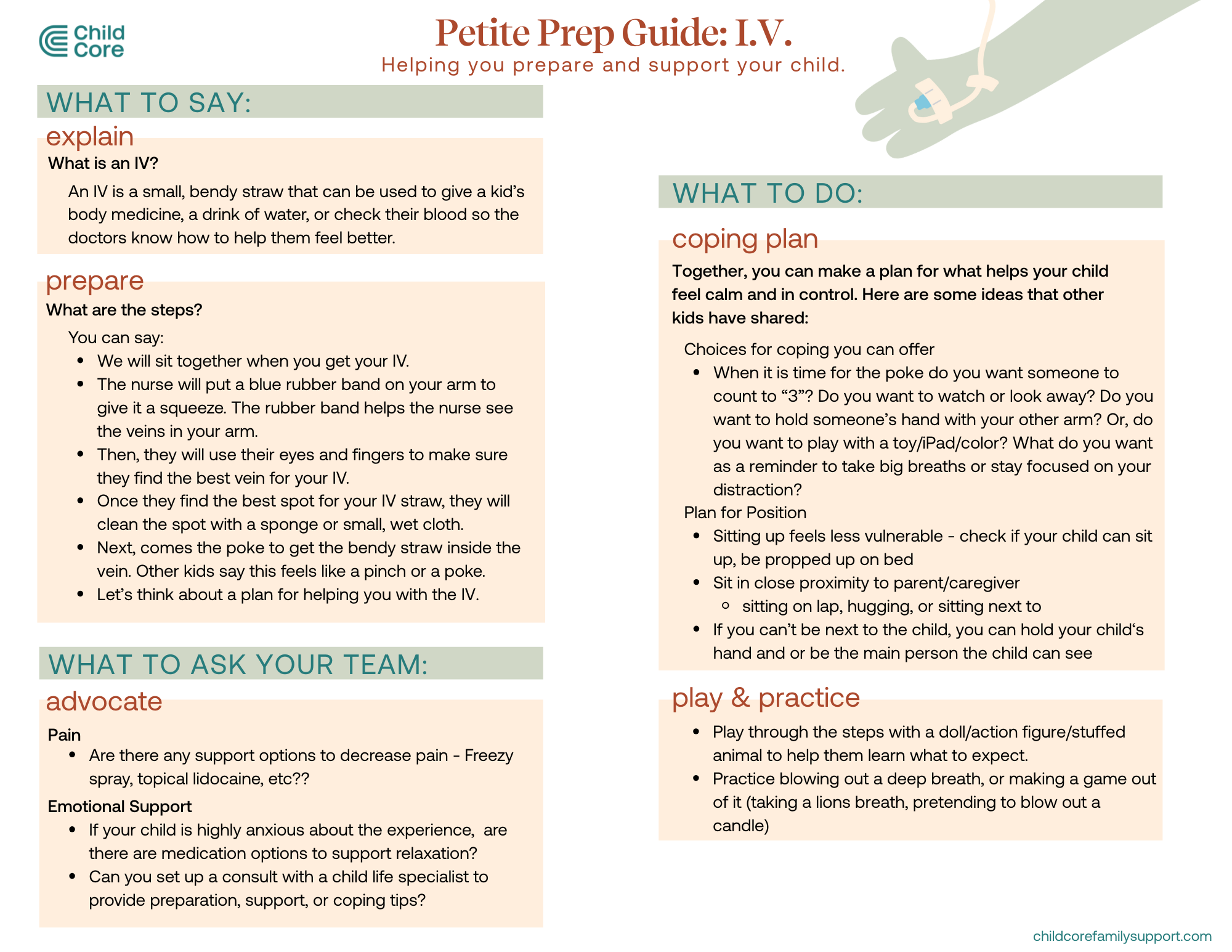 Understand the process of a getting an IV, how you can explain it to your child, and how to support them.